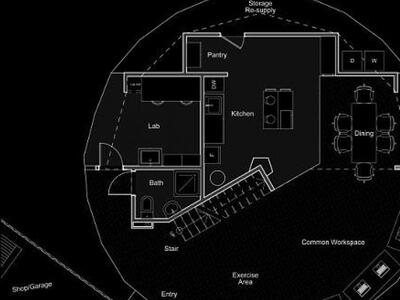 Πρόκειται για ένα θόλο δύο επιπέδων με. Στο ένα επίπεδο θα υπάρχουν τα εργαστήρια, οι χώροι εργασίας, οι αποθήκες εξοπλισμού και τροφίμων, η κουζίνα, η τραπεζαρία, γυμναστήριο και το μπάνιο και στο άλλο επίπεδο τα υπνοδωμάτια.