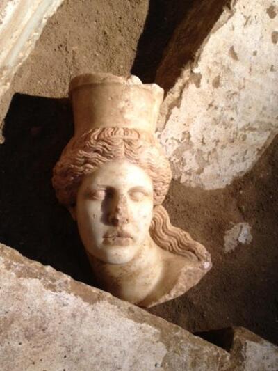 Και λίγο πιο κάτω ένα γλυπτό... Εκείνη τη στιγμή σήμανε συναγερμός. Τα μέλη της ανασκαφικής ομάδας της επικεφαλής αρχαιολόγου Κατερίνας Περιστέρη ειδοποιήθηκαν να επιστρέψουν αμέσως στον τύμβο Καστά.