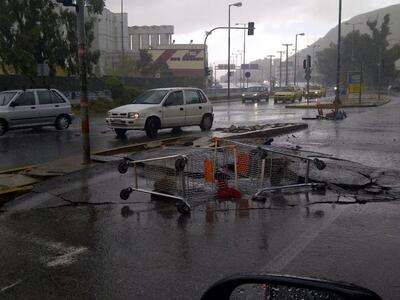 Νωρίτερα είχε σημειωθεί ατύχημα στη συμβολή της Θηβών με την οδό Σουλίου και κατά πληροφορίες μία οδηγός κινδύνεψε να παρασυρθεί από τα νερά της βροχής.