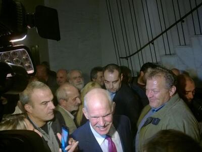 Στη συνέχεια αναφέρθηκε στα πρόσφατα πολιτικά γεγονότα της Ελλάδος ενώ χαρακτήρισε την αποχώρηση του Γιώργου Παπανδρέου το 2010 ως ανατροπή.