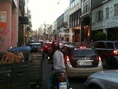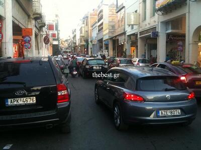 Χαρακτηριστική ήταν η κατάσταση χθες το απόγευμα, όπως αποδεικνύουν και οι φωτογραφίες από το τρίγωνο του διαβόλου μεταξύ των οδών Αγίου Ανδρέου, Έρμου και Κορίνθου.