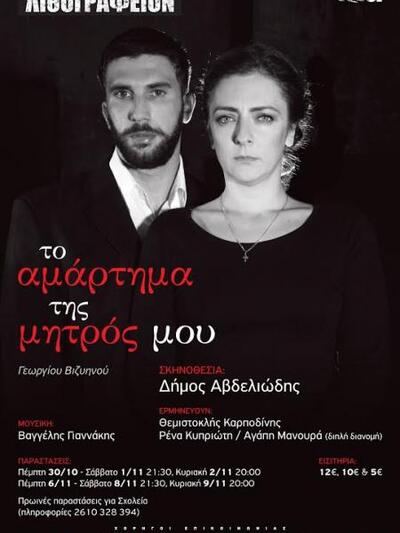 Το πρώτο ελληνικό διήγημα με ψυχαναλυτική δομή, «Το Αμάρτημα της Μητρός μου» του Γεωργίου Βιζυηνού αποτελεί ένα από τα σημαντικότερα διηγήματα της ελληνικής πεζογραφίας κι ένα σπάνιο κείμενο για την παγκόσμια λογοτεχνία, από το οποίο εμπνεύστηκε για ακόμα μια φoρά ο σπουδαίος σκηνοθέτης του θεάτρου και του κινηματογράφου Δήμος Αβδελιώδης.