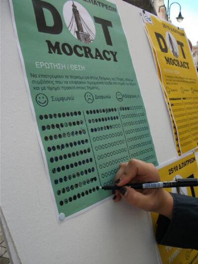 Οι εθελοντές Πάτρας του «Ποταμιού» διοργάνωσαν το πρώτο 1ο DOTMOCRACY. Έναν θεσμό που έχει υιοθετήσει το Ποτάμι πρώτο στην Ελλάδα για να ακούει τους πολίτες.