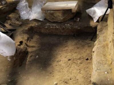1. Προχωρεί η απομάκρυνση χωμάτων από τον τέταρτο χώρο και αποκαλύφθηκε η θεμελίωση των πλαϊνών τοίχων. Η έδραση των τοίχων γίνεται επί τεχνητής επίχωσης, από καλά συμπυκνωμένο αμμοχάλικο με άργιλο, πάχους περίπου 0, 40μ. Η επίχωση αυτή πατά πάνω στο φυσικό έδαφος του λόφου Καστά, το οποίο εμφανίζεται επιφανειακά ως εδαφοποιημένος-κερματισμένος σχιστόλιθος.