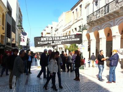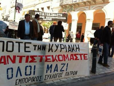 Οι εμποροϋπάλληλοι της Πάτρας εκφράζουν την πλήρη αντίθεσή τους στο άνοιγμα των καταστημάτων τις Κυριακές. Αυτή την ώρα πραγματοποιούν κινητοποίηση στη συμβολή των οδών Αγίου Νικολάου και Μαιζώνος, ενώ είναι πολλά τα καταστήματα που έχουν ανοίξει σήμερα δεύτερη μέρα των εκπτώσεων.