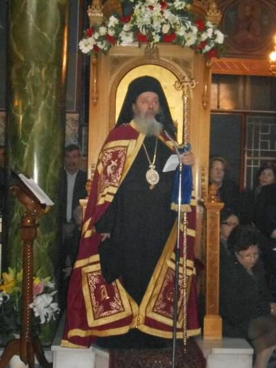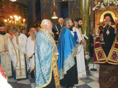 Επίσης, στον Εσπερινό παρέστησαν ο Πρωτοσύγκελος της Ιεράς Μητρόπολης Αρχιμανδρίτης Αρτέμιος Αργυρόπουλος καθώς και λοιποί Ιερείς και Διάκονοι