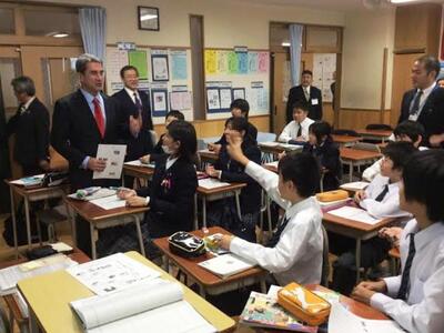 Ο Υπουργός Παιδείας και Θρησκευμάτων, Ανδρέας Λοβέρδος στο πλαίσιο της παρουσίας της ελληνικής αποστολής του ΥΠΑΙΘ στην Ιαπωνία για την διάσκεψη της UNESCO επισκέφθηκε το Γυμνάσιο Shinjuku Nishitoyama Junior High School στην περιοχή Shinjuku Ku της Ιαπωνίας. Η περιοχή, όπου ανήκει το σχολείο είναι αδελφοποιημένη με το Δήμο Λευκάδας διότι ο Λευκάδιος Χερν έζησε στο Shinjuku τα τελευταία χρόνια της ζωής του.