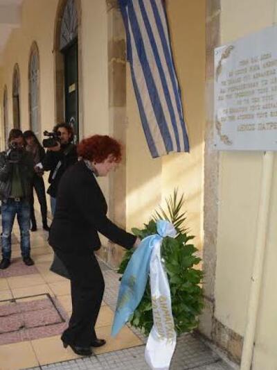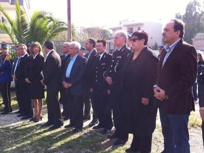 Νωρίτερα στο πλαίσιο των σημερινών επετειακών εκδηλώσεων κατέθεσαν στεφάνι στο σημείο φορείς της πόλης ανάμεσά τους και η Πρόεδρος του Δημοτικού Συμβουλιόυ Κατερίνα Γεροπαναγιώτη.