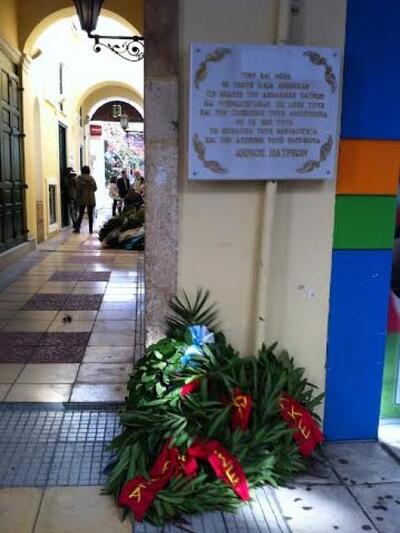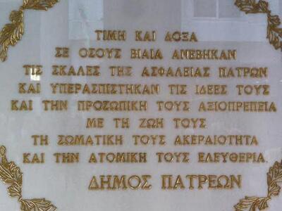 Αντικαταστάθηκε η μαρμάρινη επιγραφή στην Παλαιά Ασφάλεια της Πάτρας, στο κτήριο που είχαν βασανιστεί πολίτες στη διάρκεια της Χούντας, στην οδό Κανακάρη, την οποία βάνδαλοι αρχές Οκτώβρη είχαν ξεκολλήσει και σπάσει σε κομμάτια αφού πρώτ είχαν γράψει υβριστικά συνθήματα.