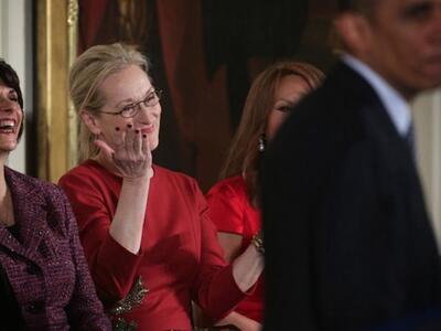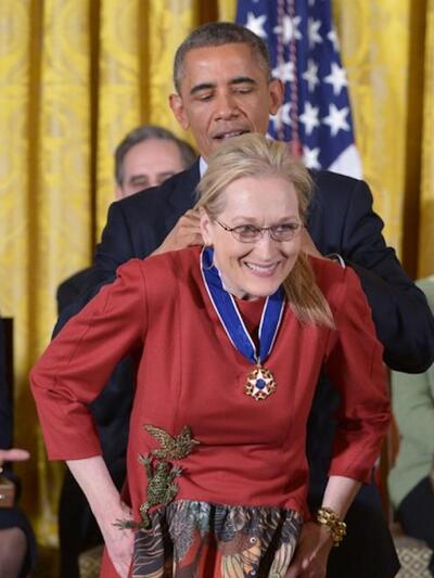«Αγαπώ την Μέριλ Στριπ. Ο σύζυγός της το ξέρει ότι την αγαπώ. Η Μισέλ το ξέρει ότι την αγαπώ. Δεν υπάρχει τίποτα που μπορεί να κάνει κανείς για αυτό...», είπε με χαμόγελο και χιούμορ ο Πρόεδρος Ομπάμα, στη χθεσινή απονομή των τιμητικών Μεταλλίων Ελευθερίας.