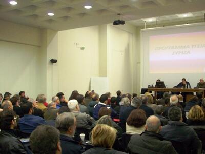 Ο Ανδρέας Ξανθός ξεκίνησε την εισήγηση του αναφέροντας τις αρχές και τις θέσεις που διέπουν την προγραμματική πρόταση του ΣΥΡΙΖΑ για την Υγεία.