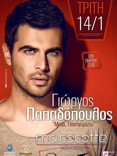 Εντυπωσιακή παρουσία και αμεσότητα στην επικοινωνία με τους θαυμαστές της μουσικής του, ο Γιώργος Παπαδόπουλος θα τραγουδήσει τα, «Μετά», «Πανηγυρίζω», «Για σένα»και άλλες επιτυχίες δικές του και άλλων καλλιτεχνών. Ο Γιώργος αγαπά την Πάτρα και το Ma Cocotte τους ανθρώπους που δεν χάνουν event, όπως το πολύ επιτυχημένο Throw Back Party.