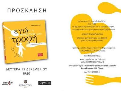 Στις 19.30 το απόγευμα, απόψε παρουσιάζεται στην Πάτρα το βιβλίο «Εγώ και η ανάγκη μου για τροφή: Μετά τις στερητικές δίαιτες» της Αλίκης Πανοπούλου.