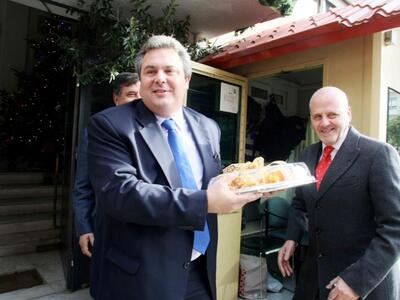 Ο πρόεδρος των ΑΝΕΛ πήγε στον επίτιμο με μια πιατέλα δίπλες
