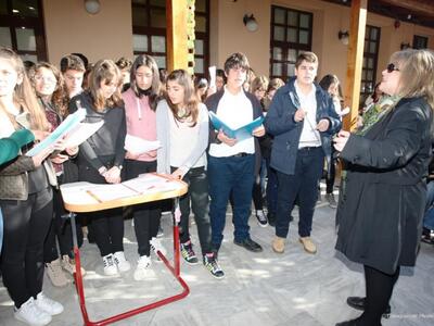 Μαζί με την καθηγήτρια τους κ.Ελένη Σερέτη, τραγούδησαν χριστουγεννιάτικα τραγούδια και έψαλλαν χριστουγεννιάτικους ύμνους και τέλος ευχήθηκαν σε όλους Καλά Χριστούγεννα.