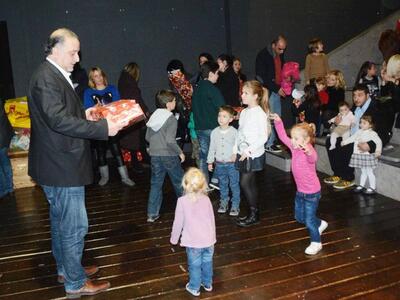 Στη συνέχεια τα παιδιά των δημοσιογράφων πήραν τα δώρα τους και έπαιξαν, ενώ οι μεγάλοι αντάλλαξαν ευχές για τις γιορτές.