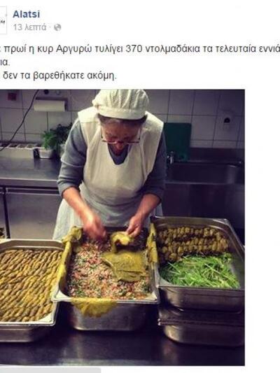 Η ανάρτηση γράφει «Κάθε πρωί η κυρ Αργυρώ τυλίγει 370 ντολμαδάκια τα τελευταία εννιάμιση χρόνια... και δεν τα βαρεθήκατε ακόμη».