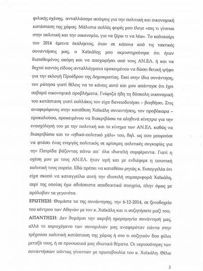 Την πρόθεση του Παύλου Χαϊκάλη να δεχθεί ανταλλάγματα προκειμένου να αποχωρήσει από τους Ανεξάρτητους Έλληνες ή να ψηφίσει για Πρόεδρο της Δημοκρατίας αποκαλύπτει στην κατάθεσή του ο Γιώργος Αποστολόπουλος.