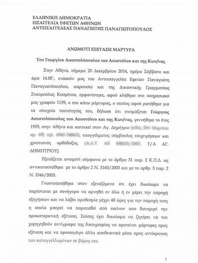 Διαβάστε αναλυτικά την κατάθεση του κ. Αποστολόπουλου: