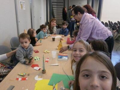 Η χριστουγεννιάτικη γιορτή για τα παιδιά των δημοσιογράφων πραγματοποιήθηκε στην αίθουσα της παλιάς λαχαναγοράς το μεσημέρι του Σαββάτου.  Περισσότερα από 80 παιδιά είχαν την ευκαιρία να ακούσουν παραμύθια από τα μέλη της θεατρικής ομάδας των δημοσιογράφων του Ηρακλείου και να φτιάξουν χριστουγεννιάτικα στολίδια σε ένα μικρό εργαστήρι που στήθηκε σε μία γωνία της μεγάλης αίθουσας. Παράλληλα η υπέροχη νεανική – παιδική χορωδία της Περιφερειακής Ενότητας Ηρακλείου με την Λένα Χατζηγεωργίου γέμισε το χώρο με χριστουγεννιάτικες μελωδίες και καθήλωσε το κοινό! Μικροί και μεγάλοι είχαν την ευκαιρία να ανταλλάξουν ευχές, να γευτούν μικρές λιχουδιές και να περάσουν λίγες ευχάριστες ώρες μακριά από την πιεστική επικαιρότητα. Ευχές για αγάπη, υγεία, ευημερία σε όλο τον κόσμο αλλά και ειδικότερα σε έναν κλάδο που μαστίζεται έδωσαν και πήραν … ενώ ο Άγιος Βασίλης – ο καλός συνάδελφος Κώστας Βεζυράκης στο ρόλο αυτό για 22η χρονιά – βρέθηκε μέσα σε παιδικές αγκαλιές και πολλά χειροκροτήματα, μοίρασε καραμέλες, χαμόγελα και δώρα!