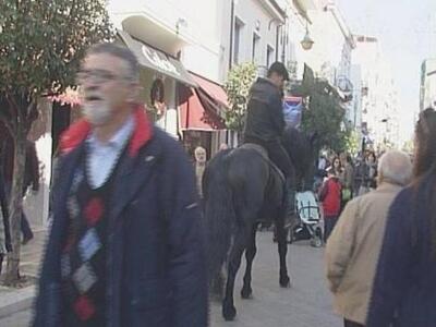 Το θέαμα του άνδρα που έκανε βόλτα με το άλογό του στον πεζόδρομο της Ρήγα Φεραίου αποτελεί απο χθες αντικείμενο σχολιασμού στο διαδίκτυο και όχι μόνο.