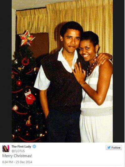 Μια άκρως συγκινητική φωτογραφία «ανέβασε» στον προσωπικό της λογαριασμό στο twitter η Πρώτη Κυρία των ΗΠΑ, Μισέλ Ομπάμα, θέλοντας με αυτό τον τρόπο να ευχαριστήσει τους διαδικτυακούς της φίλους, αλλά και να δώσει έναν άλλο τόνο στις άγιες αυτές ημέρες των εορτών.