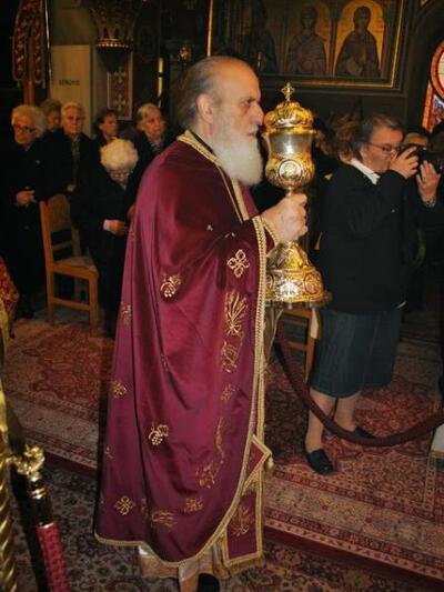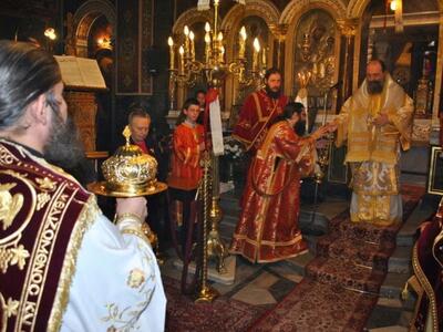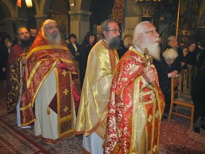 Στη Θεία Λειτουργία έλαβαν μέρος οι ιερείς: π. Ερμόλαος Μασσαράς, π. Βασίλειος Δημητρόπουλος, π. Μιχαήλ Καραγιάννης, π. Παναγιώτης Μπαχράς, π. Ιωάννης Δημητρόπουλος, π. Γεράσιμος Δημητρόπουλος, π. Γεώργιος Τζεφριός και οι διάκονοι π. Σεραφείμ Αργυρόπουλος, π. Ιωσήφ Μήλιας, π. Κωνσταντίνος Τσαγκάρης και π. Θεμιστοκλής Δημητρόπουλος.