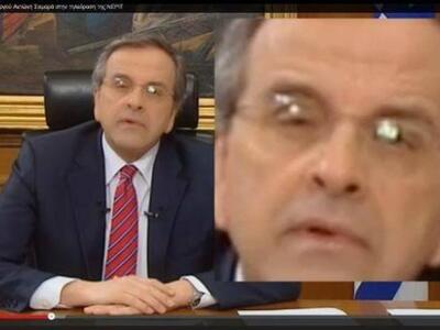 Η τηλεκριτικός Ντέπυ Γκολεμά, κάνει μια ακόμη αποκάλυψη για την τηλεοπτική παρουσία του πρωθυπουργού. Επισημαίνει ότι ο Αντώνης Σαμαράς στην συνέντευξη του διάβαζε τις απαντήσεις από Auto Cue, το μηχάνημα δηλαδή που χρησιμοποιούν οι παρουσιαστές των ειδήσεων για να διαβάζουν τις ειδήσεις. Μάλιστα προσκομίζει ως αποδεικτικό στοιχείο και φωτογραφία, η οποία δείχνει το μηχάνημα να αντικατοπτρίζεται στα γιαλιά του πρωθυπουργού.
