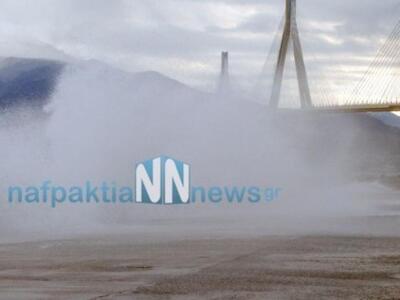 Όπως δείχνουν οι εικόνες και στο βίντεο από το σάιτ nafpaktianews.gr, της γειτονικής Ναυπάκτου, η θάλασσα έχει βγεί στην κυριολεξία έξω, στην προβλήτα.