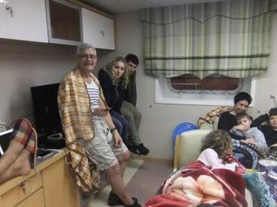 Ήταν στον 5 όροφο. Ξαπλώσαμε και οι τρεις στο ίδιο κρεβάτι. Το πλοίο κουνούσε.