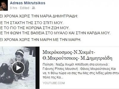 Ο παρουσιαστής έγραψε στη σελίδα του στο Facebook: «Έξι χρόνια χωρίς την Μαρία Δημητριάδη.