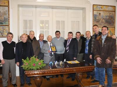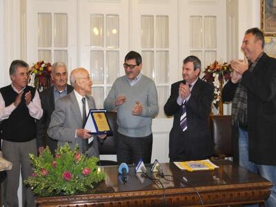 Για τη γνώση και τα ζητήματα ζωής τα οποία μεταφέρει ο Σ.Ε.Β.Α.Σ. (Σύνδεσμος Ελλήνων Βετεράνων Αθλητών Στίβου) Πάτρας και τα οποία είναι ανάγκη να γίνουν κτήμα όλης της κοινωνίας και κυρίως των μαθητών των σχολείων, έκανε λόγο ο Δήμαρχος Πατρέων Κώστας Πελετίδης απονέμοντας σήμερα τιμητική πλακέτα στον 93χρονο βετεράνο αθλητή στίβου μέλος του Συνδέσμου Ανδρέα Πολυχρονόπουλο, ο οποίος διακρίθηκε σε διεθνείς αγώνες βετεράνων (3ος σε Πανευρωπαϊκούς κλειστού στίβου στα 60 μ. και 2ος σε Παγκόσμιους στα 200 μ.).