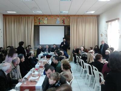 Ο π. Κωνσταντίνος αναφέρθηκε στο πανάρχαιο έθιμο της Βασιλειόπιττας, έκοψε την πίττα και αφού συνεχάρη όλους τους ενορίτες, ευχήθηκε Καλή Χρονιά και τα έτη τους να είναι πάμπολλα και ευλογημένα.