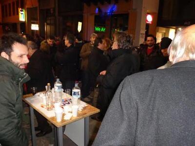 Από νωρίς στο μεταξύ είχε λειτουργήσει ρεφενέ κουζίνα με μεζέδες, που έφτιαξαν οι γυναίκες των μελών στην σπιτική κουζίνα τους και τους προσέφεραν προς τούτο και με κρασί που διατέθηκε για την περίσταση.