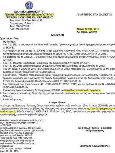 Η δαπάνη, σύμφωνα με το επίσημο έγγραφο της παραγγελίας όπως δημοσιεύτηκε στη Διαύγεια, δεν είναι σκανδαλώδης: