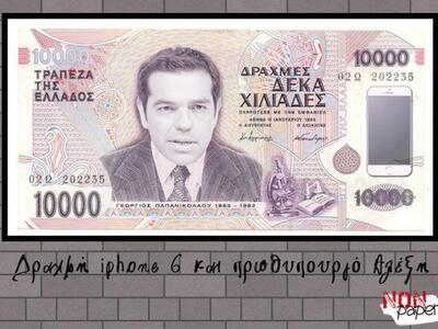 Το διαδίκτυο βρίθει φωτογραφικών μοντάζ που απεικονίζουν την δραχμή και τον ΣΥΡΙΖΑ. Την επόμενη μέρα. Μέχρι που κάποιοι αναφέρονται στην εποχή Μ.Ε. (μετά εκλογών), σαν να πρόκειται για το Π.Χ. και Μ.Χ. (μετά Χριστού).