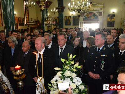 Επικήδειο επίσης εκφώνησαν η Βουλευτής Κεφαλονιάς Αφροδίτη Θεοπεφτάτου, ο αντιπεριφερειάρχης Παναγής Δρακουλόγκωνας, ο δήμαρχος Αλέξανδρος Παρίσης, ο τέως αντιπεριφερειάρχης Σωτήρης Κουρής, η πρόεδρος του Λυκείου Ελληνίδων παράρτημα Αργοστολίου Ευρώπη Μοσχονά και ο Πρωτοσύγκελος της Ιεράς Μητρόπολης Κεφαλληνίας αρχιμανδρίτης π. Γεράσιμος Φωκάς.