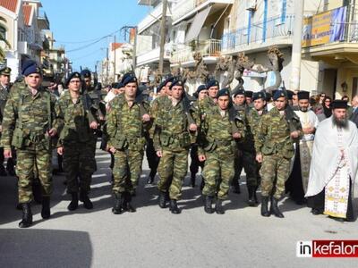 Κατά την διάρκεια της πομπής τιμές απέδωσαν και συνόδευσαν το σκήνωμα, άγημα της Πολεμικής Αεροπορίας από την 116 Πτέρυγα Μάχης στην Ανδραβίδα και άγημα του Στρατού από το ΚΕΤΧ Πατρών, η Φιλαρμονική Σχολή Κεφαλονιάς και η Φιλαρμονική της ΚΕΔΗΚΕ "Διονύσης Λαυράγκας".