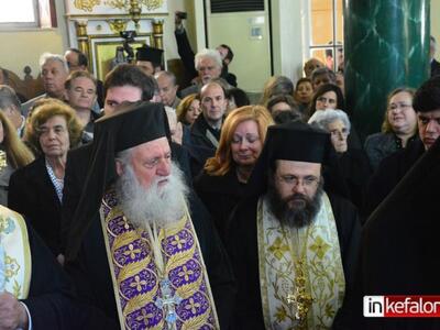 Όπως αναφέρει το ρεπορτάζ του Γιώργου Χαλαβαζή στο σάιτ inkefalonia.gr, απ’ όπου και οι φωτό και το βίντεο, η Εξόδιος Ακολουθία τελέστηκε στον Ιερό Μητροπολιτικό Ναό Ευαγγελιστρίας Αργοστολίου και στην τελετή παρέστησαν εκπρόσωποι της εκκλησίας, οι τοπικές αρχές, εκπρόσωποι των στρατιωτικών δυνάμεων, των σωμάτων ασφαλείας και δεκάδες πιστοί, που με δάκρυα στα μάτια είπαν το «τελευταίο αντίο» στον επί τριακονταετία ποιμενάρχη τους.