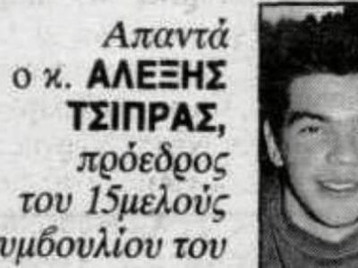 Αρχές της δεκαετίας του 90, ο Αλέξης Τσίπρας συμμετέχει στις μαθητικές κινητοποιήσεις της εποχής ως πρόεδρος του Δεκαπενταμελούς, του σχολείου του. Μάλιστα δίνει συνέντευξη στην Άννα Παναγιωταρέα, για τις καταλήψεις.