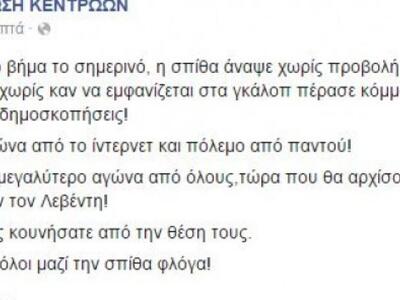 Κάλεσμα στους ψηφοφόρους για να γίνει "η σπίθα φλόγα" στέλνει η Ένωση Κεντρώων και ο επικεφαλής της Βασίλης Λεβέντης καθώς είναι το δεύτερο μεγαλύτερο κόμμα πίσω από το ΚΙΔΗΣΟ (Κίνημα Δημοκρατών Σοσιαλιστών) που δεν μπαίνει στη Βουλή, σύμφωνα με τα μέχρι στιγμής αποτελέσματα των εκλογών.