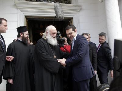 Στις 14:00, ο Αλέξης Τσίπρας επισκέφτηκε τον αρχιεπίσκοπο Ιερώνυμο για να τον ενημερώσει ότι επιθυμεί να δώσει πολιτικό όρκο και οχι θρησκευτικό. Παρόλα αυτά του ζήτησε να προσευχηθεί για εκείνον και τον διαβεβαίωσε οτι η σχέση του με την Εκκλησία θα είναι άριστη.