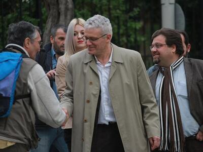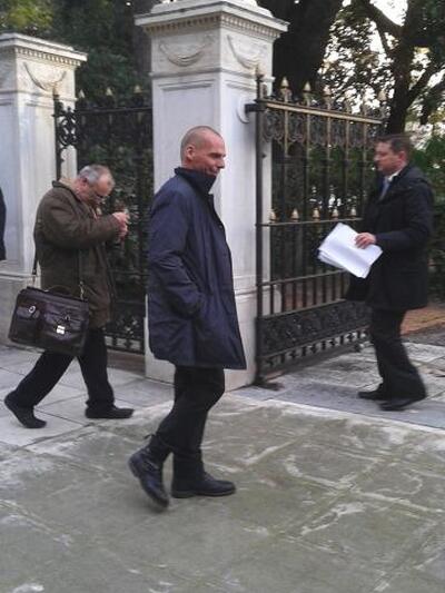 Πιστός στο προσωπικό του στυλ και ο Γιάννης Βαρουφάκης, ο οποίος κατεύθασε με μπουφάν.
