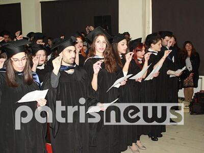 Η τελετή ολοκληρώθηκε με την ανάγνωση του όρκου και την απονομή των πτυχίων στους σπουδαστές, μέσα σε έντονα φορτισμένη ατμόσφαιρα και με τα φλας να παίρνουν «φωτιά».