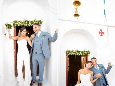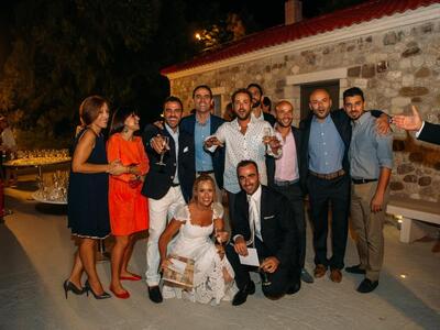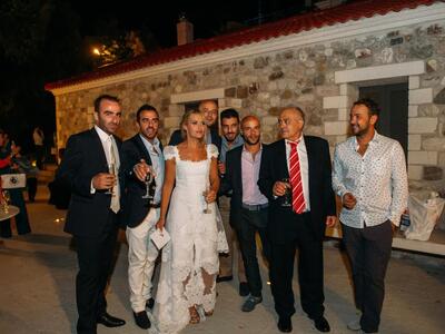 Στον Ιερό ναό Αγίου Αναστασίου στο Δρέπανο παντρεύτηκαν ο φωτογράφος Χρήστος Κοσμάς και η αγαπημένη του έμπορος Έλενα Αυγερινού με κουμπάρο τον Στάθη Μπιτσάκο. Ακολούθησε πάρτυ μέχρι τις πρώτες πρωινές ώρες στον ατμοσφαιρικό χώρο κάτω από τα πλατάνια στον αίθριο του Ιερού Ναού.