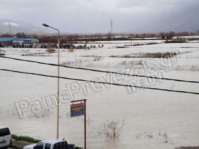 Τα νερά του ποταμού Αχέροντα που ξεχείλισε εχθές έφθασαν μέχρι το Καναλάκι πλημμυρίζοντας όλη την περιοχή.