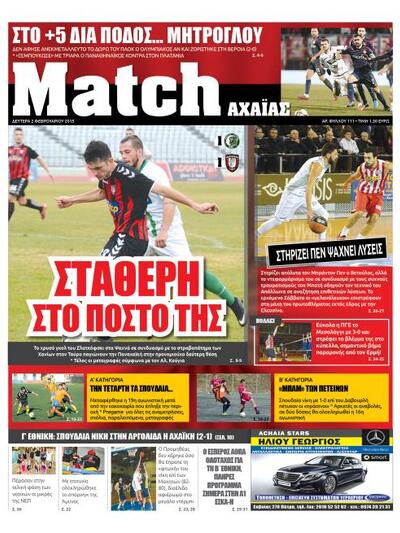 Δείτε το σημερινό πρωτοσέλιδο της Εφημερίδας Match Αχαϊας!