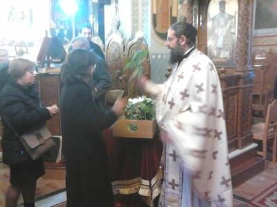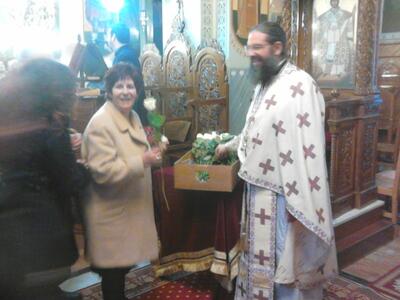 Στο τέλος της Θείας Λειτουργίας συγκινημένος πρόσφερε σε όλες τις μητέρες που ευρίσκονταν στον Ναό, από ένα τριαντάφυλλο εις ένδειξη ευγνωμοσύνης και αγάπης προς τις μητέρες όλων μας.