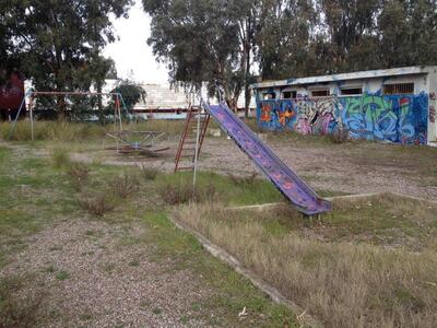 Στο πρώην κολυμβητήριο της Πάτρας στην Αγυιά δεν υπάρχουν λόγια να περιγράψει κανείς την εγκατάλειψη. Μια παιδική χαρά "φάντασμα" στέκει μέσα σε μια "ζούγκλα" από χόρτα. Κανείς δεν την επισκέπτεται πια..