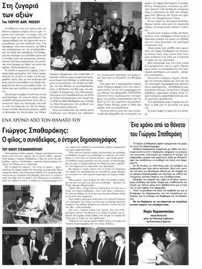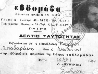 Στο σημερινό φύλλο της εφημερίδας "Γεγονότα", υπάρχει ένα πολυσέλιδο αφιέρωμα στον Γιώργο Σπαυαράκη. Γράφουν για αυτόν οι φίλοι του σκάβοντας αναμνήσεις. Στην θέση της παλιάς φωτογραφίας στην σελίδα 2, βρίσκεται η παραπάνω φωτογραφία με το εξής σημείωμα: "Μια παλιά ταυτότητα που μας βυθίζει στις  αναμνήσεις. Ο εκδότης των «Γ» Γιώργος Σπαθαράκης, που έφυγε τόσο νωρίς, στα πρώτα του βήματα στην Εβδομάδα στα 1984. Η ταυτότητα βεβαιώνει ότι πρόκειται περί του διευθυντή της εφημερίδας, ο οποίος με το πάθος της νιότης ξεκινάει το ταξίδι σε μια πόλη που δεν ήταν αλλά έγινε η πατρίδα του.  Σε μια πόλη που του έδωσε χαρές και λύπες, σε έναν χώρο που τον αποζημίωσε με επιτυχίες και του έβαλε δύσκολες δοκιμασίες, πάντα στο πλευρό ανθρώπων που τον αγάπησαν και τους αγάπησε...
